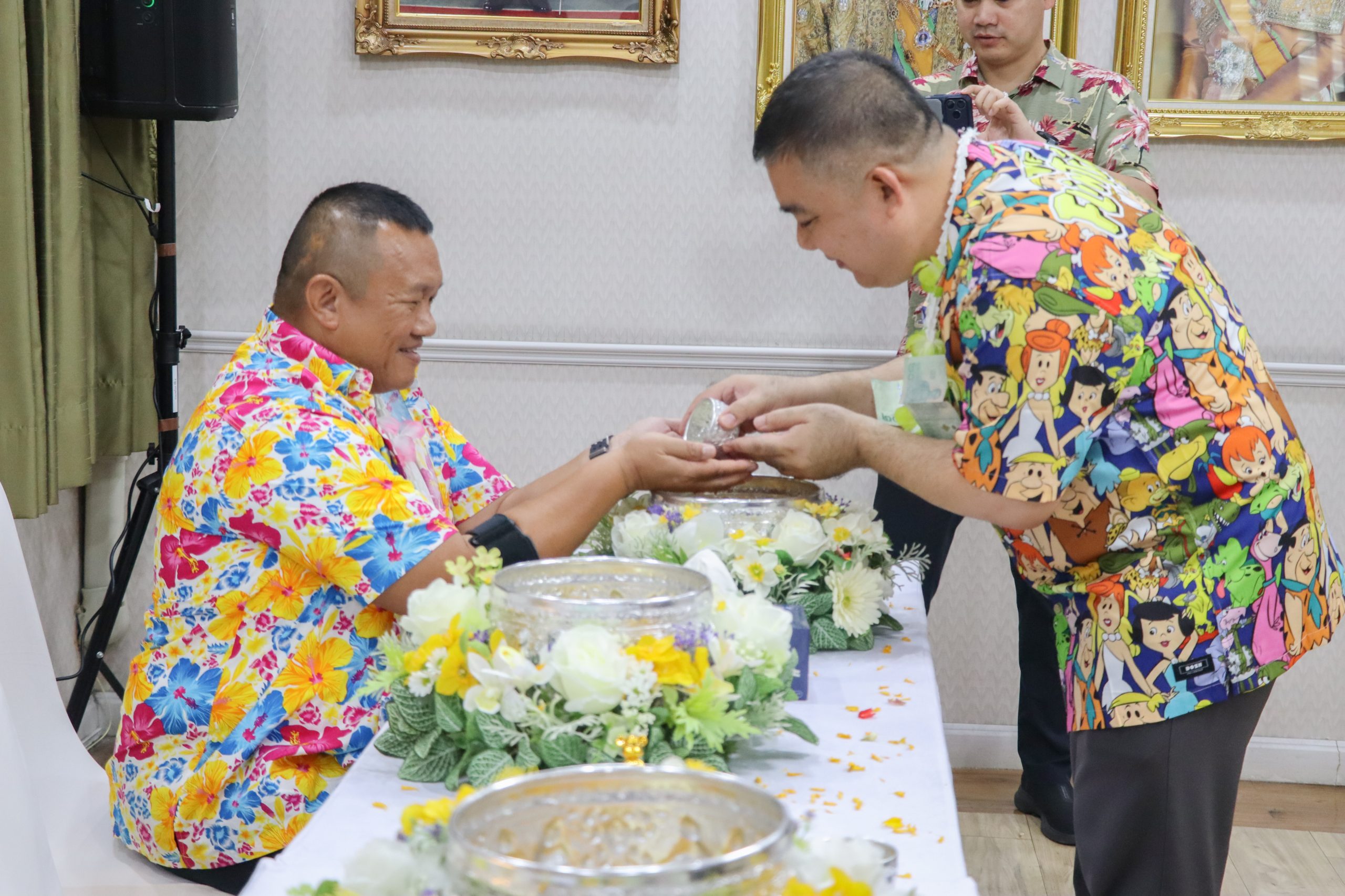 วันที่ 9 เม.ย.69 เวลา 09.00 น. พล.ต.ต.เฉลิมศักดิ์ สุขสำราญ ผบก.ทพ. พร้อมด้วย พ.ต.อ.ธงชัย วิไลพรหม รอง ผบก.ทพ.(1), พ.ต.อ.ถาวร มีขำ รอง ผบก.ทพ.(2), พ.ต.อ.สุรศักดิ์ ยุรชาติ รอง ผบก.ทพ.(3), พ.ต.อ.พัฒนพงษ์ ภูมิเจริญ รอง ผบก.ทพ.(5) และ ผกก. ในสังกัด ทพ. ร่วมพิธีสรงน้ำพระพุทธรูป ทำบุญเจริญพระพุทธมนต์ และรดน้ำขอพรผู้บังคับบัญชา เนื่องในโอกาสวันสงกรานต์ 2569 ณ โถงพิธี ชั้น 7 อาคาร 5 ตร.