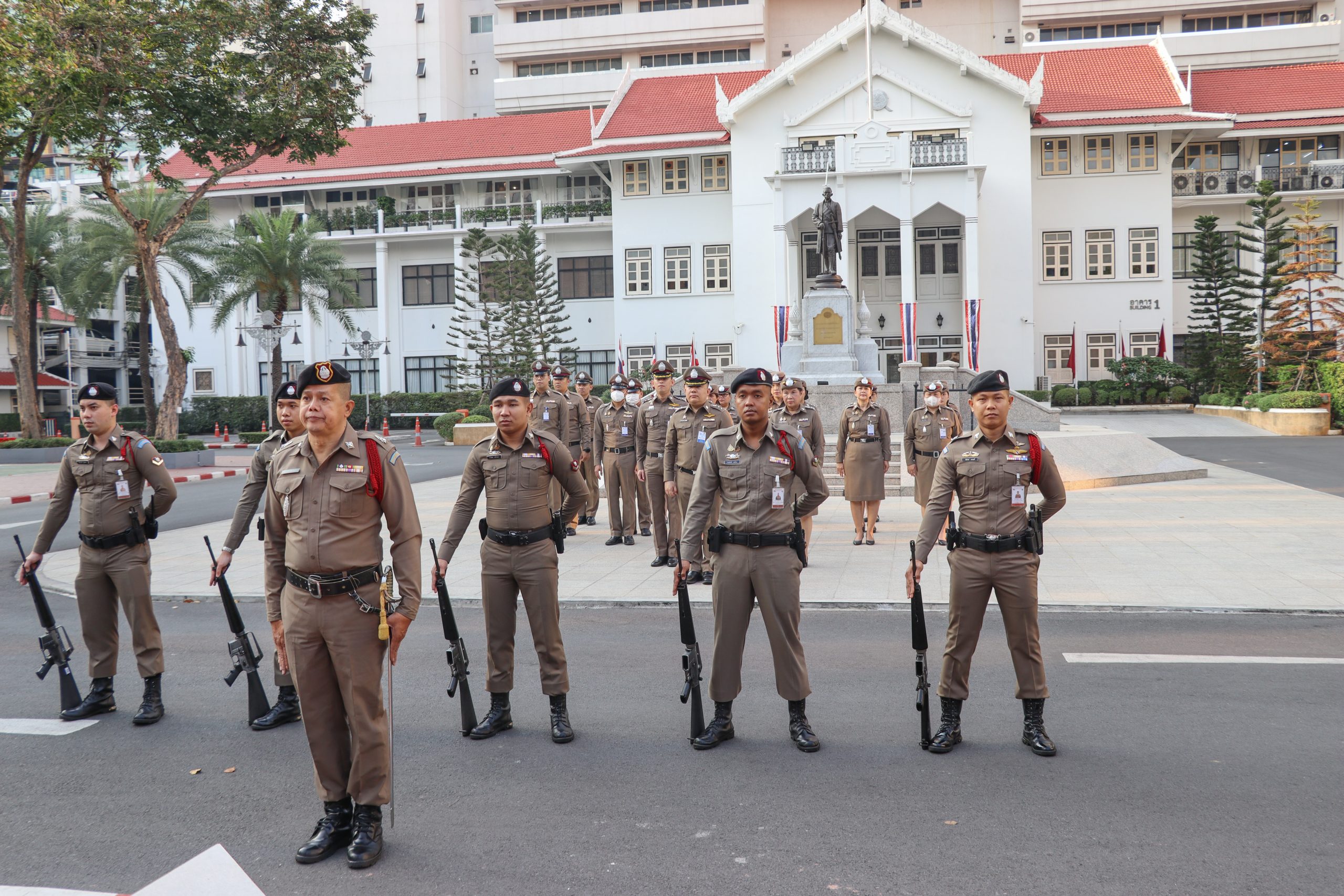 วันที่ 6 ก.พ. 69 เวลา 8.00 น. พล.ต.ต.เฉลิมศักดิ์ สุขสำราญ ผบก.ทพ. มอบหมายให้ พ.ต.อ.พัฒนพงษ์ ภูมิเจริญ รอง ผบก.ทพ.(5) พร้อมด้วย พ.ต.อ.หญิง วรรณนภา สุวรรณเพ็ชร ผกก.ฝ่ายประเมินบุคคล ทพ., พ.ต.อ.พงษ์ฐกฤต เอื้อประเสริฐ ผกก.ฝ่ายความชอบ ทพ. และข้าราชการตำรวจในสังกัด ทพ. ร่วมเข้าแถวเคารพธงชาติ ณ บริเวณลานพระบรมราชานุสาวรีย์ ร.4 ตร.